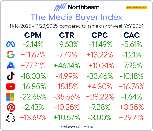 Northbeam’s latest index shows clear platform divergence ahead of peak season. Some channels are becoming efficiency engines while others show growing friction. Reading these signals correctly is now a competitive advantage for performance teams.