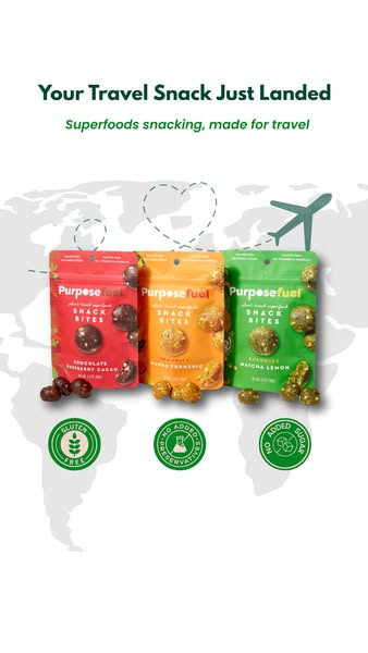 1. Clever travel metaphor - âYour Travel Snack Just Landedâ ties product convenience to motion, energy, and modern lifestyles. The airplane graphic and dotted flight path visually reinforce the concept of movement. Use travel or journey metaphors to position portable products as essentials for life on the go.