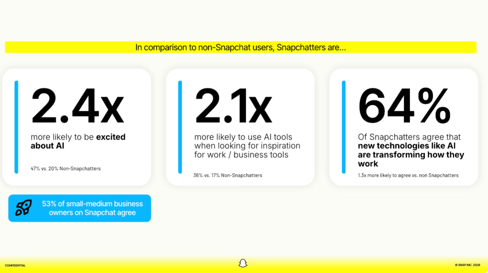 The report says the platform’s creator-driven and casual format opens space for brand storytelling. Snapchat users are 1.7× more receptive to B2B storytelling content, particularly creator-led business insights and entrepreneurial journeys.
