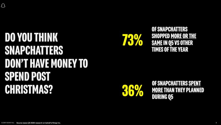 Q5 is now a major shopping window where Snapchatters spend heavily, stay active longer, and look for creator-led inspiration. Gen Z turns post-holiday downtime into shared, social discovery moments.