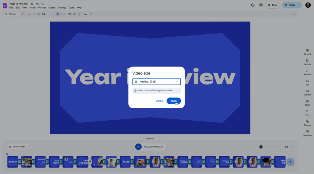 2) Google Vids Adds Vertical and Square Formats - Google Vids now supports vertical (9:16) and square (1:1) video creation alongside widescreen. This update makes it easier to produce content tailored for YouTube Shorts, Instagram Reels, and TikTok, with built-in templates coming soon to speed up cross-platform video.