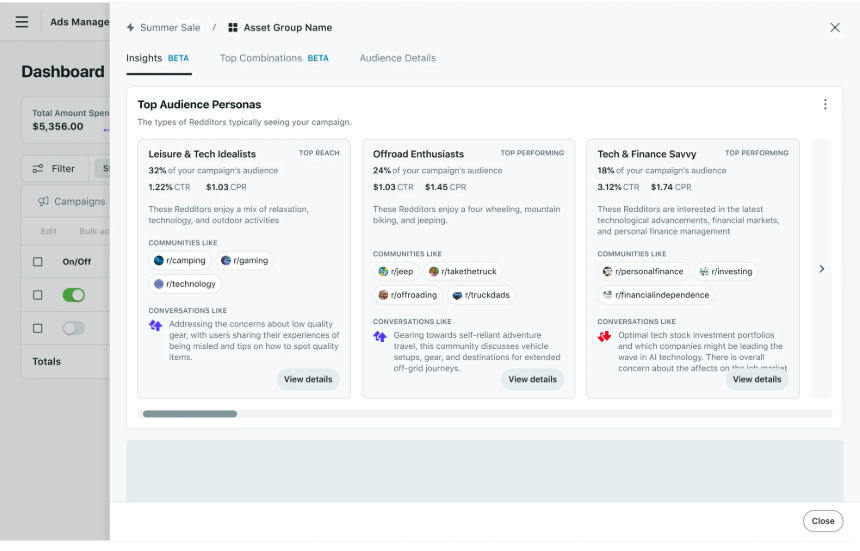 Top Audience Personas reveal which types of users engage with ads and what they care about. Reddit positions this as automation that explains decisions instead of hiding them.