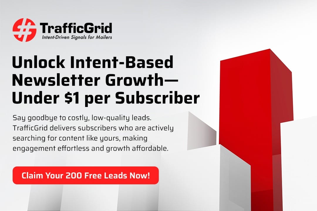 TrafficGrid delivers 200 free U.S.-based subscribers for the test who actually open, click, and convert, before you ever pay. These arenât giveaway leads.
