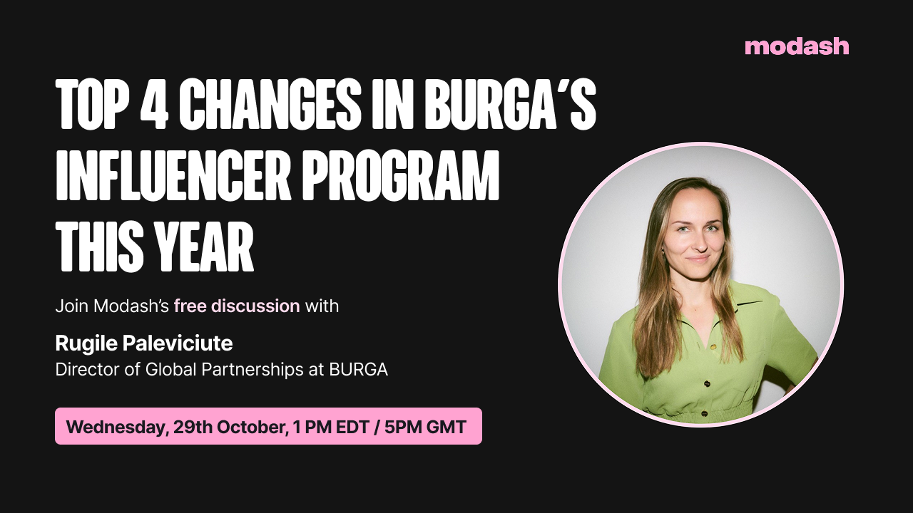 Join Rugile Paleviciute, Director of Global Partnerships at BURGA, for a free Modash webinar today revealing the 4 system-level changes her 26-person in-house team made this year.