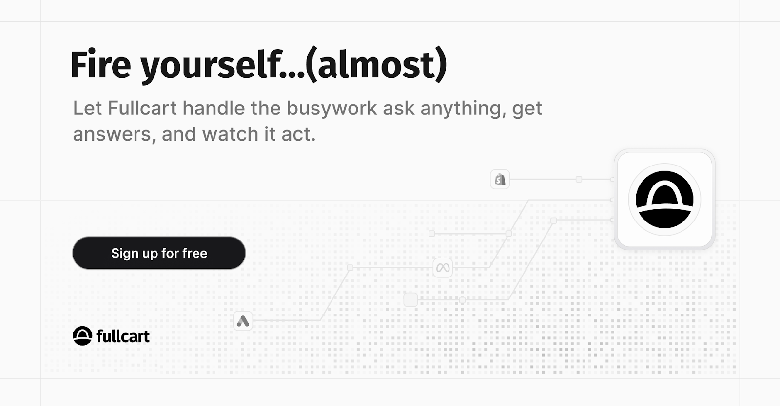 Fullcart is the AI Operator that analyzes your data across every platform, surfaces whatâs breaking, and tells you exactly what to fix before it hurts your P&L.