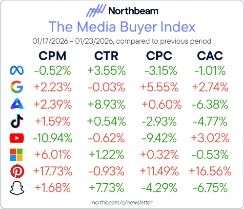 1. CPC - Costs rose on Google, Amazon, Microsoft, and Pinterest. Costs fell on Meta, TikTok, YouTube, and Snapchat. Lower-cost channels open room for fresh creative testing, while rising-cost channels demand tighter controls on waste.