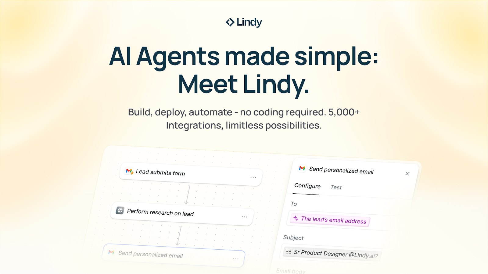 From booking platforms to lead nurturing, Lindy turns hours of manual work into minutes of automation. Your next hire won't be human; it will be AI.