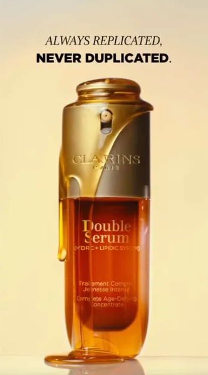 They're Bragging About Being Copied - Most brands run from imitation. Clarins leans into it as a flex. "Always replicated" is an implicit admission that the entire industry has tried to steal this formula and failed. That's not a claim. That's a reputation receipt.